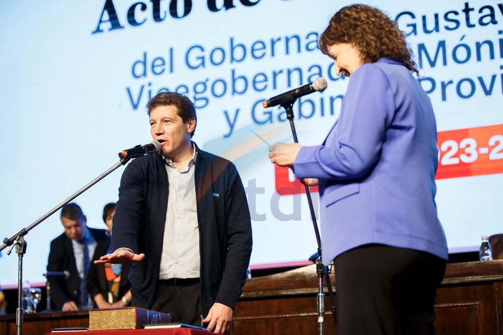 Gustavo Melella y la vicegobernadora Monica Urquiza juraron y asumieron el segundo mandato a cargo de la provincia en un acto multitudinario en el colegio Don Bosco.